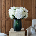Blanche - Features 30 white hydrangea stems beautifully combined with 3 flowing orchids, presented in a distinctive vase.